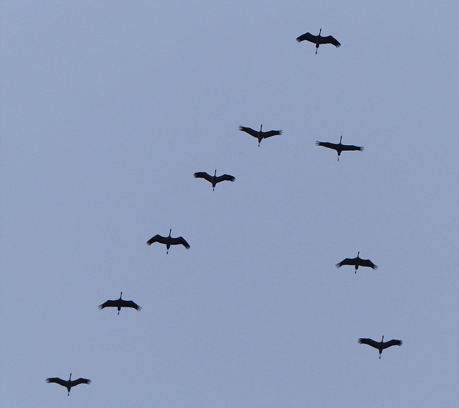 erkennt man, dass es Kraniche und keine Wildgänse sind.