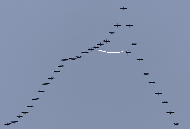 Denn all die Vögel eines Zuges müssen zusammenhalten, damit sie ankommen