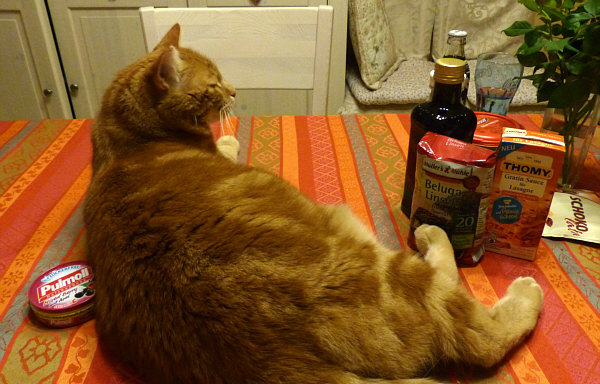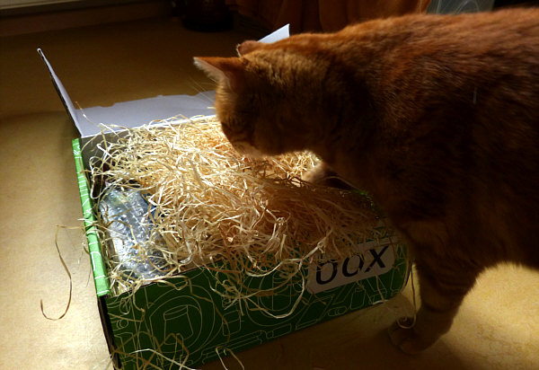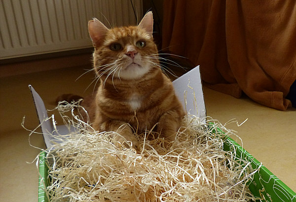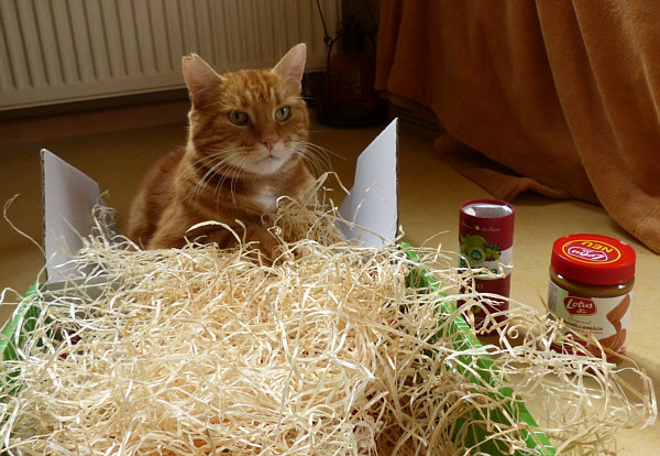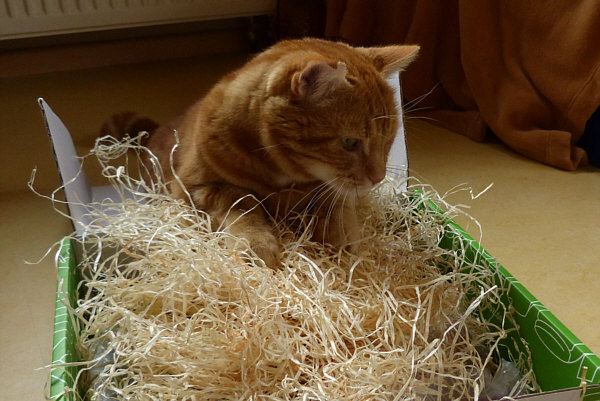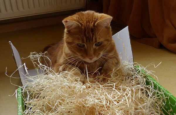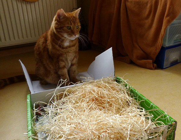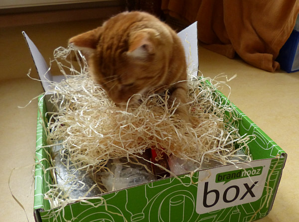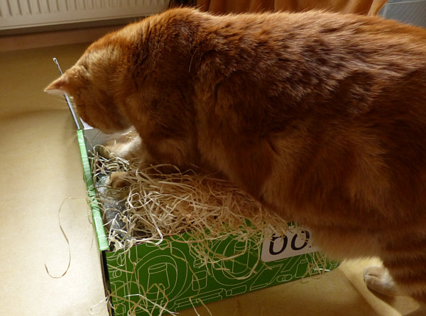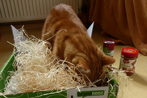 Es gibt übrigens eine Alternative zur Brandnooz-Box ... ... nämlich die Cat-Box *gg*. Denn kaum stand die Snooze-Box da ... ![]() ... war auch schon Mickey zur Stelle ... ![]() ... und dann latscht der Kerl doch tatsächlich mit beiden Füßen in die Box: ![]() Ich dachte, ich fasse es nicht ... schimpfte kurz ... schob ihn weg ... ![]() ... doch das hielt nur wenige Sekunden an und dann nahm er einen zweiten Anlauf ... ![]() ... und begann mit der Holzwolle zu spielen: ![]() Auf mein "hey" reagierte er nur kurz ... ![]() ... und dann begann Mickey mit dem Auspacken ;)). ![]() Als er dann schon einen Teil ausgepackt hatte ... ![]() ... musste er natürlich auch noch gucken, was ganz unten drin war: ![]() Gestern hatte ich ja zwei Überraschungsboxen vorgestellt ... es gibt noch eine dritte: ![]() Das ist die "Cool Box" mit gekühlter Ware ... deswegen ist da auch ... ![]() ![]() ... Alu obendrauf und Eis drinnen. Ab und zu zwischen den normalen Boxen gibt es noch Sonderboxen wie die Coolbox oder die Backbox (für Frauen mit Backwahn oder so ;) ). Ich schau mal in die Coolbox rein ... Beate und ich haben das übrigens so gemacht, dass wir beide die Augen zugemacht haben und erst mal versucht haben, zu fühlen, was das sein könnte. |