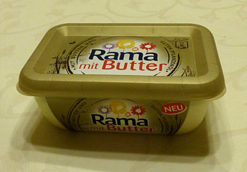 Eigentlich ganz normale Margarine, die kann man durchaus essen, aber ich mag lieber gesalzene Butter. |