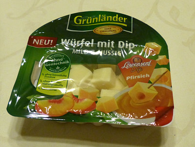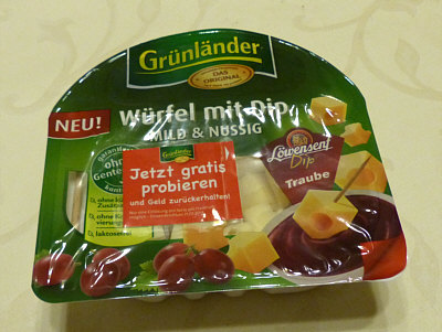 Okay, Grünländer mag ich ja. Ist in der leicht-Version mein Standardkäse. Aber ich mag Senf eher nicht. Trauben mag ich erst recht nicht. Aber das da sind Käsewürfel (lecker) mit Traube-Senf-Dip (ürgs). Ich habs aber trotzdem mal probiert ... Kinners ... ... Ihr werdet es kaum glauben: dat iss genial. Dat iss unwahrscheinlich lecker, auch wenn man sich das nicht vorstellen kann. Hab ich mir sogar nochmal gekauft, womit der Zweck dieser Werbeaktion erfüllt war ;). |
