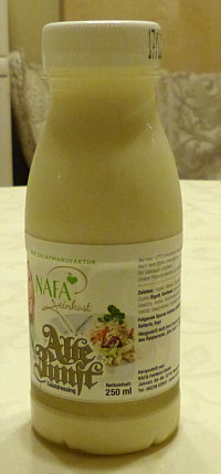 Das gleiche wie oben, nur mit Pfirsich-Senf. Auch gut, aber Traubensenf hat gewonnen. |