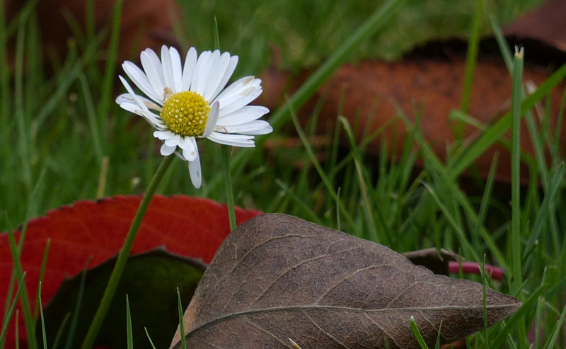 ... oder aber ein "Stillleben mit Gänseblümchen und Herbstblättern"