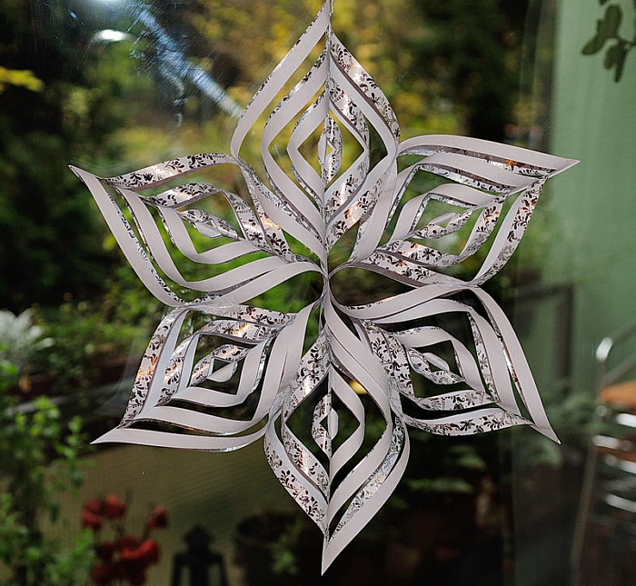 Elfis heutiger Stern nennt sich Zwirbelstern und sieht mit mit glänzendem Papier am besten aus: weiter