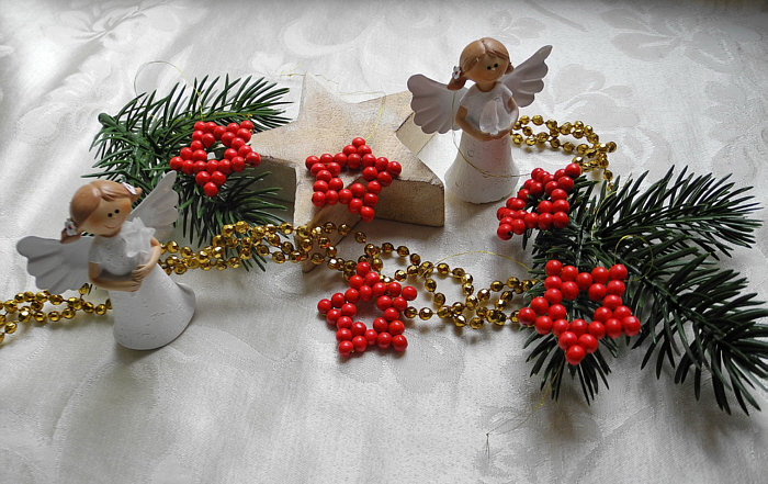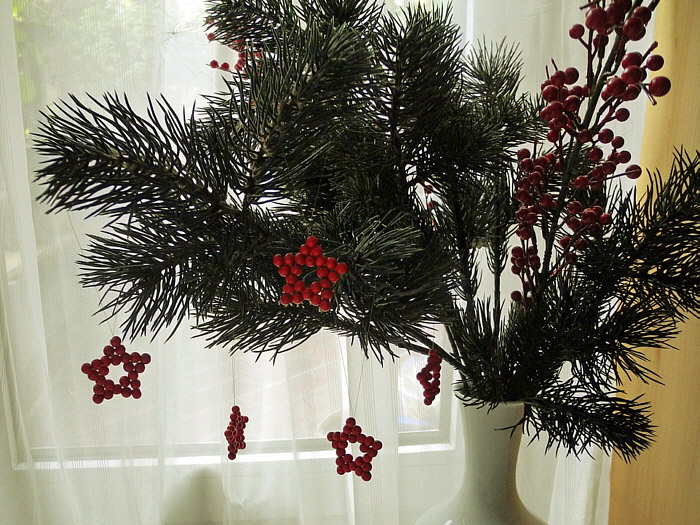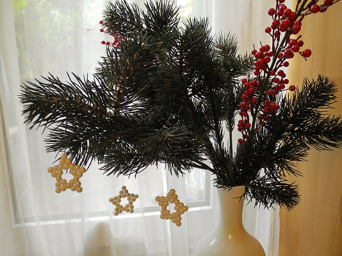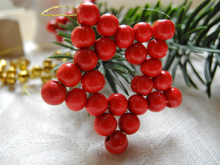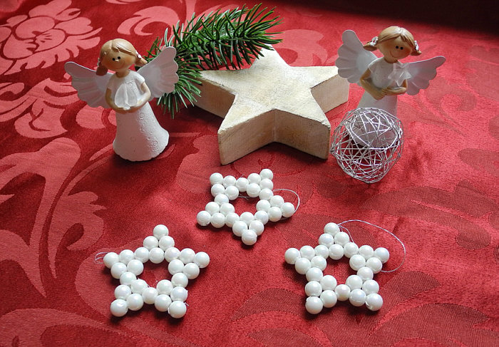 Heute mal wieder keine Sterne aus Papier, denn es sind Perlensterne Die gibts in klassischem Weihnachtsrot ... ... oder in Weiß: weiter