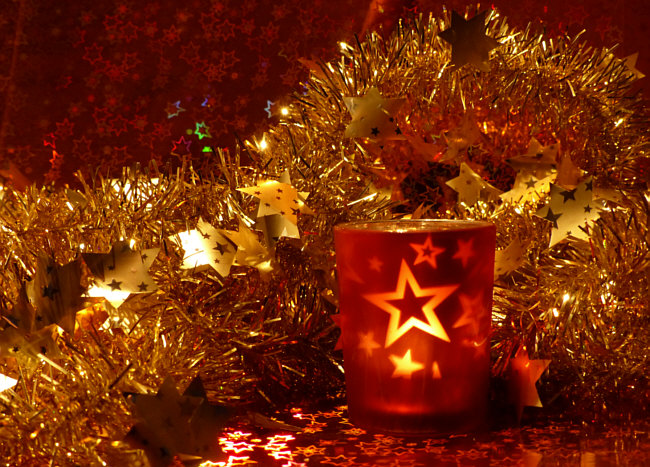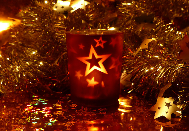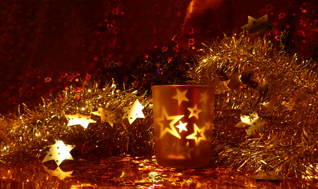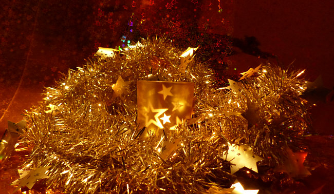nahm die Girlande und ließ sie ... sagen wir mal ... hinter das Teelicht fallen.
