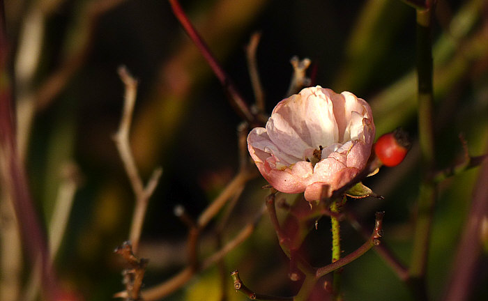 mit Ästen als Dekoration ... und hier ist auch eine Hagebutte dabei.