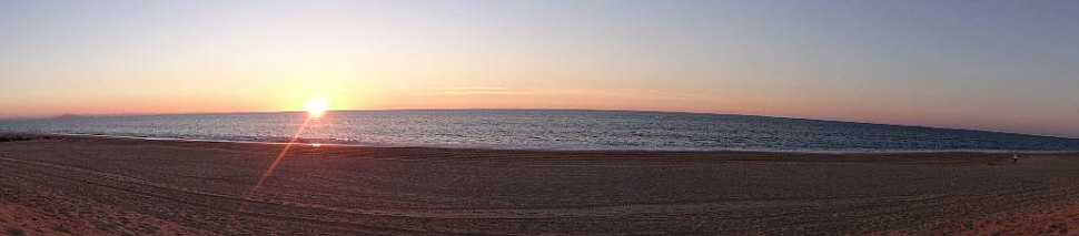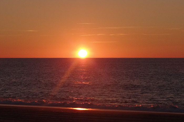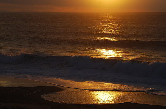 wir setzen uns an den Strand und gucken, wie gestern, in die untergehende Sonne: