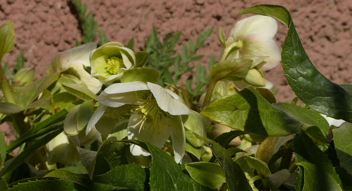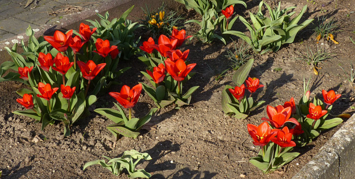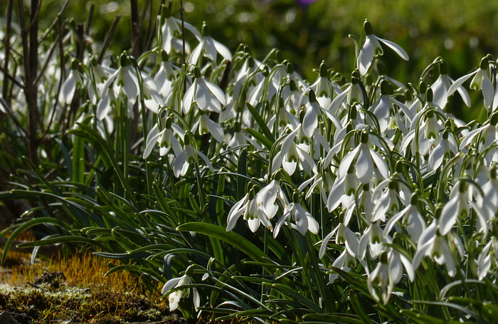Schneeglöckchen und Christrosen und frühe Tulpen und Osterglocken blühen
