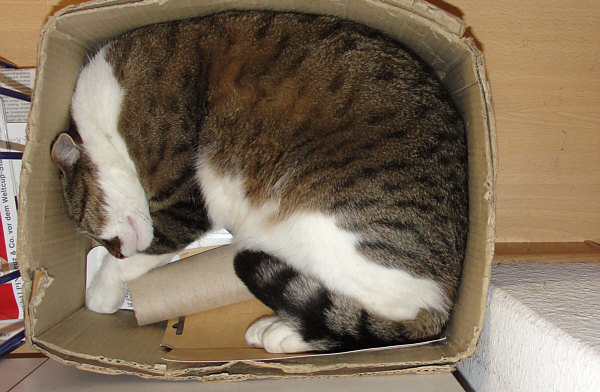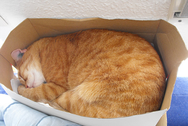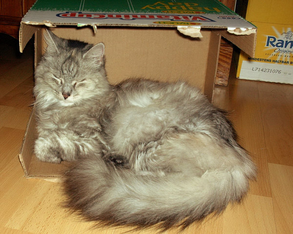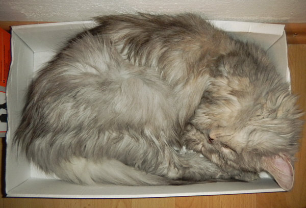 Und ist die Schachtel noch so klein, Minouche mit ihren 6 Kilos passt trotzdem
