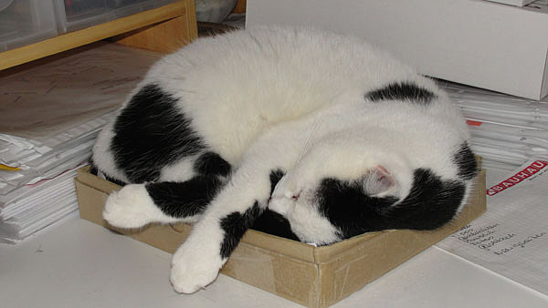 wie sie schlafen bzw. sich ins Körbchen gequetscht haben.
