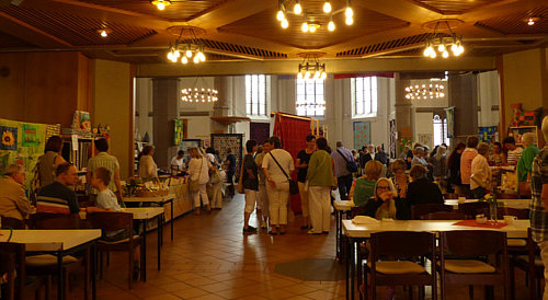Wir wollten eigentlich sehen, ob es vor der Kirche Fronleichnams-Schmuck