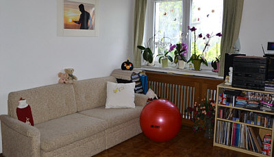 ... sich da vorne an die Tür stellt und in Richtung Couch blickt ... sieht man das:
