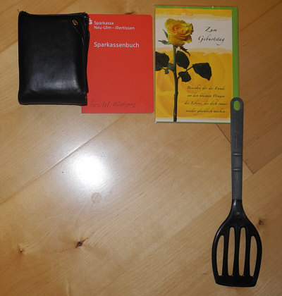 Geldbeutel, Sparbuch, Geburtstagskarte