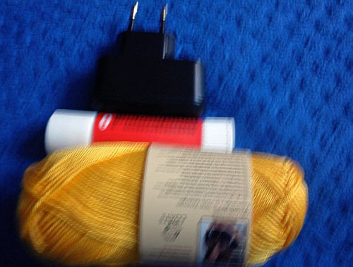 Ladegerät, Klebestift, Wolle, mit Euphorie-Handy fotografiert ;)