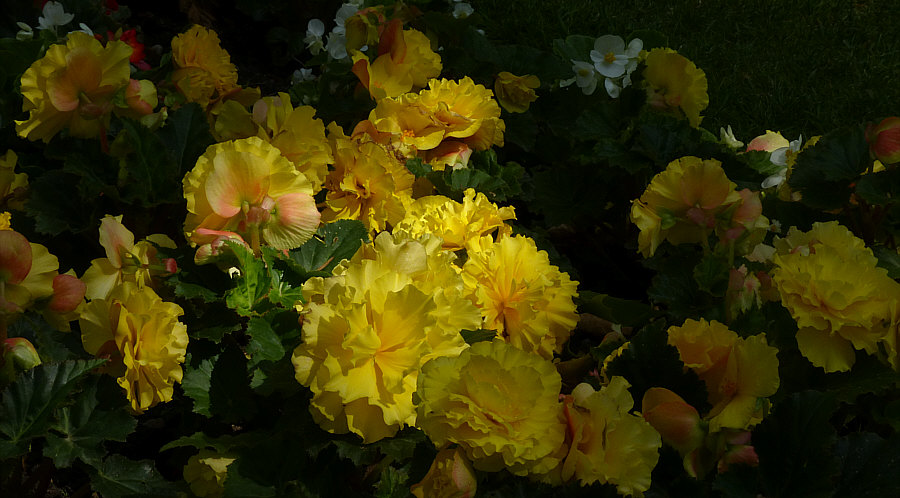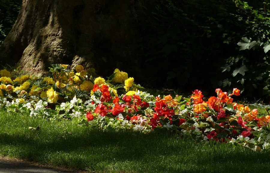 Eine Platanenallee ... ein Weg, mit Blumen gesäumt. Zwischen Sonne und Schatten bunte Bilder voller Lebensfreude. Da muss man stehen bleiben und eine kleine Begoniengalerie fotografieren: