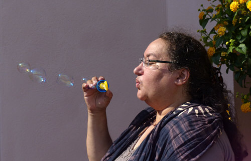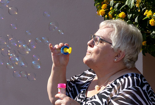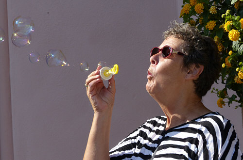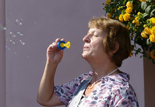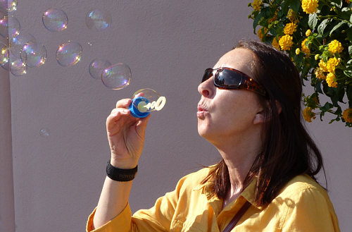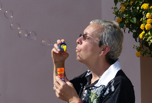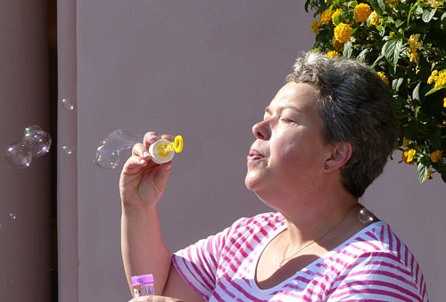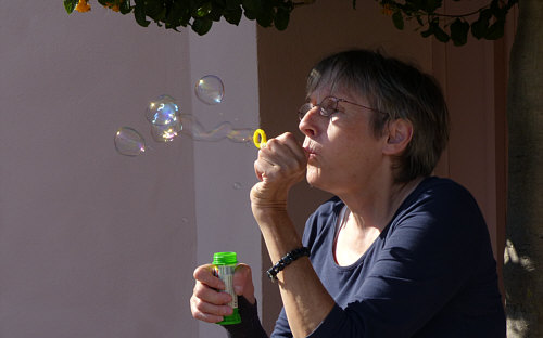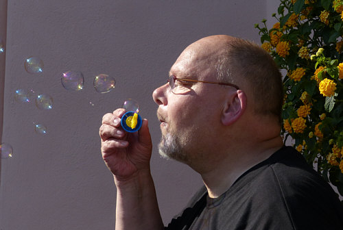 so dass seelenfarbig schillernde Seifenblasen entstanden: