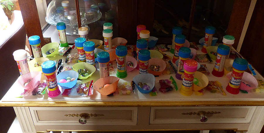 und Seifenblasen mit Geduldsspiel obendrauf.