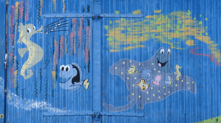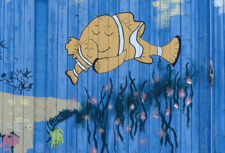 Ausgesprochen schöne Malerei am Haus ...