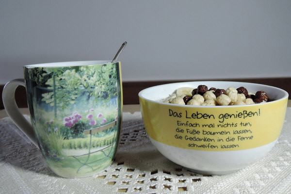 Heute gibts die noch nicht gezeigten täBi-Bilder :)). Das wird jetzt nicht ganz einfach ... ich versuche heute, alle TäBi's (tägliches Bild der Seelenfärbler) zu finden und zu zeigen ... durch meinen Computercrash endete diese Rubrik abrupt ... und somit gab es auch keine Zusammenfassung mit Kommentarfunktion. Heute zeige ich nochmal alle Bilder ... plus ein paar zusätzliche. 1. Woche - Lina ![]() Schon morgens um 9 Uhr hat Lina dieses Bild fotografiert, weil sie danach zum Pilgertreffen gefahren ist. ![]() Lina hat Nachbars Katze fotografiert ... als diese Lina gesehen hatte, blieb sie stehen, als wollte sie fotografiert und bei täBi gezeigt werden. ![]() Lina kommt mit ihren Füßen im Moment ja nicht so weit und so hat sie sich heute morgen zu den Blumen am Haus gestellt und mit ihrem Kopf einen Schatten an die Hauswand gemalt. ![]() Eigentlich wollte Lina von außen das Küchenfenster mit dem Blumenkisterl fotografieren, aber dann kam ein Tagpfauenauge das Weges und setzte sich auf die Fensterumrandung. ![]() Gestern hat Lina dann ihr "Blumenkisterl" fotografiert. Sie hat jedes Mal, wenn sie vorbeigeht, viel Freude damit. ![]() Letzten Sonntag hat Lina von guten Freunden eine Rose geschenkt bekommen und "da sie noch nicht ganz verwelkt ist, schafft sie es noch ins täBi" sagt Lina. 1. Woche - Lieserl ![]() Lieserl hatte von Samstag auf Sonntag liebe Freunde zu Besuch und als Abschluss des schönen Wochenendes gab es einen selbst gebackenen Apfelstrudel. ![]() Lieserl möchte Euch heute ihr neuestes Familienmitglied vorstellen: Das ist Chewbacca, 16 Wochen alt. ![]() Lieserls Motto "Dahoam die letzten schönen Herbsttage genießen". ![]() Lieserl war gesern den ganzen Tag im Garten bei ihrer Mutti und hat geholfen, ihn winterfest zu machen ... dann noch zum Gärtner, um einen Apfelbaum auszusuchen. Auf einmal rief die Solarlampe "der Apfelbaum ist mein Freund, nimm mich bitte auch mit" ... und so geschah es ;)). ![]() Gestern hat Lieserl ihre neue Gartenbewohner eingepflanzt und hofft sehr, dass diese sich bei ihr wohlfühlen. Für die Lämpchen hat sie noch keinen Platz gefunden, da wird erst noch mit dem Mann beratschlagt, wo sie am besten zur Geltung kommen. ![]() Ist nicht so ganz einfach mit täBi ... Lieserl hatte gestern Putztag und da gibts nix Interessantes zu fotografieren ... da griff Lieserl auf ihr Lieblingsmotiv zurück ... der Himmel ... mit viel Spannung und Sonne und blau und Gewitterfront im Anmarsch. 1. Woche - Sr. Maria ![]() Sr. Maria war gestern in ihrer Heimat bei einem Ordensjubiläum und hat dieses Bild von ihrem Heimatdorf mitgebracht. ![]() Sr. Maria kam an diesem Tisch vorbei ... und hat ihn schnell fotografiert und gehofft, dass sie niemand gesehen hat ;)). ![]() "Sag mal, das soll unser Trinkwasser sein ?" scheinen diese Beiden zu denken. ![]() Bitte mal zugreifen, ist alles aus dem eigenen Garten. ![]() Maria fragt sich, ob das eine Art Krebsgeschwür und ob das die Auswirkung ist von all dem was der Baum durch die vorbeiwandernden Zwei- sowie Vierbeinern abbekommt. ![]() Lina und Lieserl haben hier schon eine rotbraune Katze gezeigt ... und nun gibts auch eine von Maria ... Spaziergangsbegegnung, die Sonne genießend. 2. Woche - Lina ![]() So ein schöner Sonntag ... Linas Mann war nicht da und sie musste nicht kochen, denn er bringt ihr etwas mit nach Hause ... also konnte Lina spazieren gehen. ![]() Laut Wetterbericht soll bei Lina gestern der letzte schöne Herbsttag sein und darum ist sie die Straße entlang gegangen, genau die entgegengesetzte Richtung wie gestern. Lina sagt "die Natur ist derzeit so schön ... so viele saftige Grünflächen, die herbstlichen Bäume, da kann man für die grauen Tage Kraft tanken. ![]() Der Regen ist da ... Zeit, mal nichts zu tun... die Füße baumeln und die Gedanken in die Ferne schweifen zu lassen. Die Tasse und das Häferl sind ein Geschenk vor der OP von Linas Sohn. 2. Woche - Lieserl ![]() Lieserl war gestern den ganzen Tag unterwegs ... vormittags auf einem politischen Stammtisch zur Windkraft (in ihrer Gemeinde gehen in den nächsten Wochen 5 Windkraftanlagen in Betrieb) und anschließend ist sie noch mit einer Abordnung zu einer weiteren Anlage gefahren. Dabei ist dieses Bild entstanden ... Grüße aus Oberbayern. ![]() Auf das, was hier zu sehen ist, ist Lieserl ganz besonders stolz. Wir sehen die neue Kellerbar, die Lieserl fast ganz alleine gebaut hat. Jetzt muss sie nur noch putzen und dekorieren, dann kann die erste Party steigen. ![]() Lieserl stellt uns heute ihre "alte Dame Tamara" vor. 2. Woche - Sr. Maria ![]() Ein ganz besonderes Motiv bot gestern der fotografische Blick in Richtung Himmel. ![]() Gestern war Maria fast nur mit dem Auto unterwegs, was ihr nicht gerade die ganz große Freude bringt. Immerhin hat sie eine Horde "Männer" und neugierige "Weltgugger" mitgebracht. ![]() Sr. Maria war gestern mit ihrem "TTS" unterwegs ... "Trottl tret selber" *gg* und dabei kam sie an dieser Fahrradreihe vorbei, die locker jeden Zaun ersetzt ;)). -- So ... das waren die Bilder, die ich gezeigt hatte ... nun wühle ich mal in meinem Postfach, was die nächsten Bilder gewesen wären bzw. wer mir von den Dreien noch wie lange etwas geschickt hatte. Wühl wühl wühl ... hier sind sie, die noch nicht gezeigten täBi-Bilder bzw. das, was ich noch gefunden habe: Lina ... noch nicht gezeigt: ![]() Linas Bad ... ihre Wohlfühloase ... in einer Ecke des Bades wurde eine Ablage gemauert und darüber eine Mauer hochgezogen und ein Abstellplatz für Blumen geschaffen. Davor ist von einer zur anderen Seite eine große, lange Badewanne eingebaut. Lieserl ... noch nicht gezeigt: ![]() Lieserl schickte an diesem Tag ihr Bild schon früh ... weil sie dann keine Zeit mehr hatte ... wegen: "aufhübschen", "Freundin abholen", "vor dem Konzert was Essen gehen" ... undsoweiter. ![]() Lieserls Herbstdeko ... Sr. Maria ... noch nicht gezeigt: ![]() Die "Rosengartengruppe" in den Dolomiten. -- Das ist so eine schöne Rub