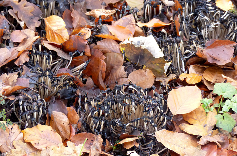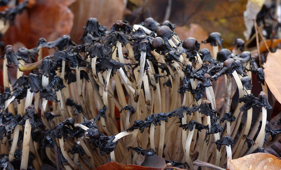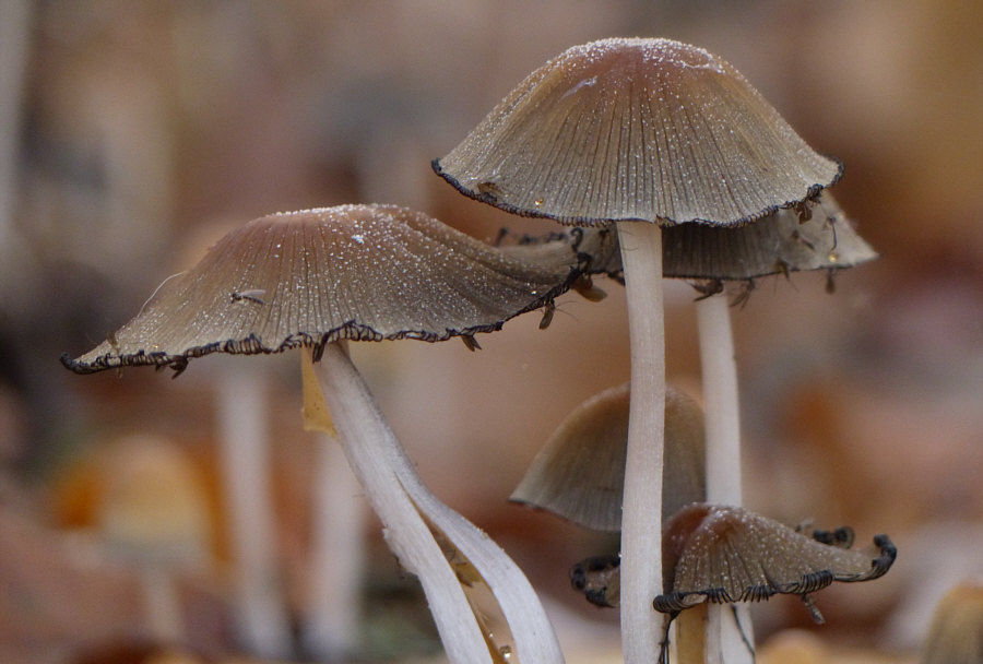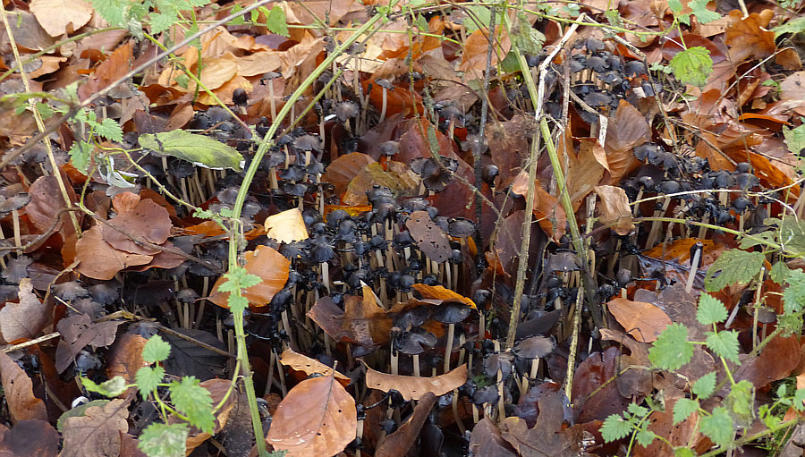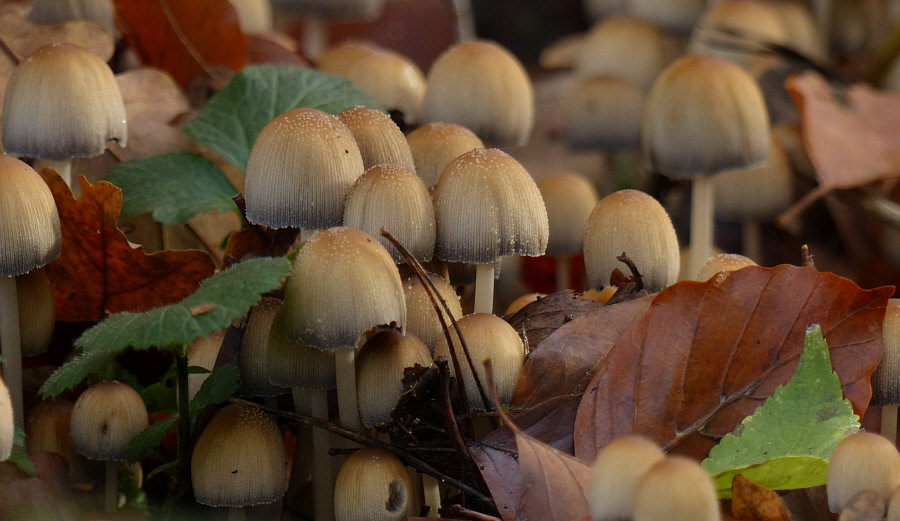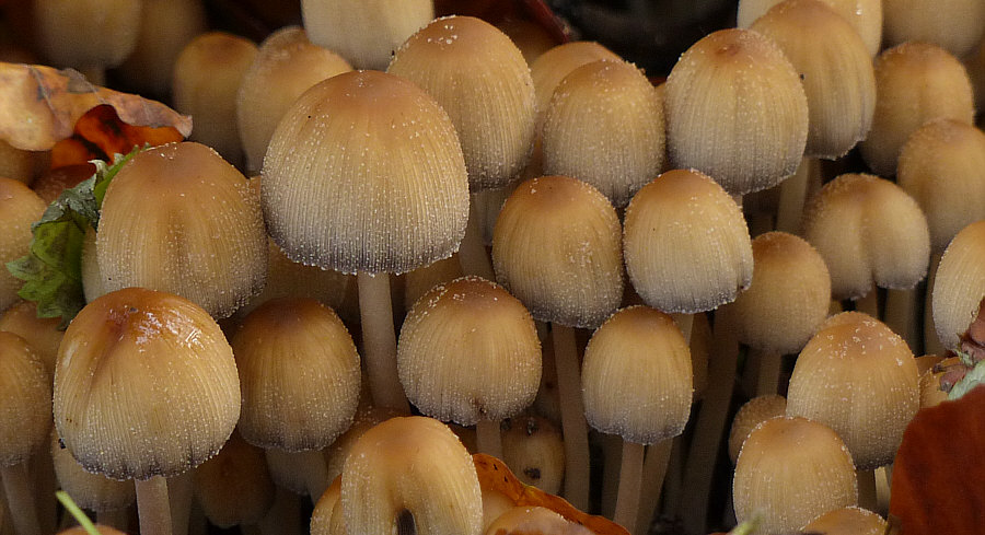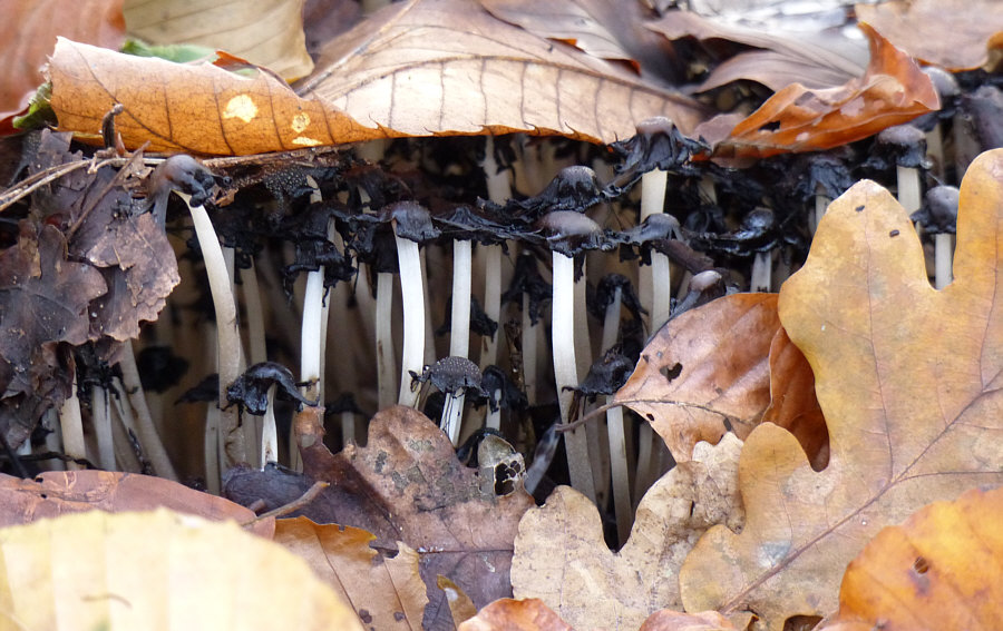 Schön ? Nun ja ... schön ist ja alles, was man mit Liebe betrachtet und so sind für den, der den Wald liebt, die Bilder schön. Und es ist auch schön, durch den Wald zu gehen und das zu sehen. Aber es sind jetzt keine Bilder, zu denen ich jetzt "ach, wie ist das schön" sagen würde. Interessant ? Hmm ... Natur ist immer interessant und je länger man ein solches Bild betrachtet, desto mehr Details und interessante Dinge kann man entdecken. Je nach Entdeckerauge ist das mehr oder weniger interessant, aber für das ganz große Interesse sind die Bilder eine Idee zu "normal". Faszinierend ? Für Mr. Spock schon ... aber wer im Weltall lebt, der findet jeden Wald faszinierend ;)). Aber ... nee ... ist nicht wirklich faszinierend. Auf den ersten Blick. Wie sagte Matthias so schön: "Nein, würde ich nicht (diese Attribute geben) ... aber ich bin sicher da kommt noch was ..." Ähemm ... wie kommste denn da drauf, Matthias ?? Weil sie so nix Besonderes sind, diese Bilder ? Weil sie alltäglich sind ? Ja, könnte durchaus sein ... ... darum lasst uns im Alltäglichen das Besondere entdecken :)). Alle drei Bilder wurden im Umkreis von 20 Metern fotografiert. Und auf allen drei Bilder gibts die gleiche Sache in jeweils anderer Version zu entdecken. Fangen wir mit diesem Bild an ... ![]() ... hier fielen einzelnen ja die Pilzstiele auf. Die man besser als die Hüte sieht. Auf den ersten Blick. Darum lasst uns einen zweiten ... ![]() ... und dritten Blick wagen: ![]() ![]() ![]() ![]() Das dürften Tintlinge sein ... Pilze, die sich irgendwann auflösen und nur noch schwarze Flüssigkeit sind. Umwimmelt von Mücken an diesem Tag. Das zweite Bild ... ![]() ... auf den ersten Blick. Auf den zweiten Blick ist das komische dunkle da vorne ... ![]() ... auch eine Pilzversammlung ... wahrscheinlich die gleichen Pilze wie auf dem ersten Bild, nur in anderem Aggregatszustand ... darum wagen wir auch hier einen dritten Blick: ![]() ![]() ![]() ![]() Aller guten Dinge sind drei ... ![]() ... und auf diesem Bild ist das Besondere besonders schwer zu entdecken. Weil es sich farblich bestens getarnt hat. Der zweite Blick zeigt uns aber ... ![]() ... das sich hier weitere Blicke ebenfalls lohnen würden. ![]() ![]() ![]() ![]() ![]() Alle drei Bilder zeigten also denselben Pilz ... hier ziemlich jung, am Anfang etwas älter und das zweite Bild war fließend. Seht Ihr den weißen Belag ... als würde der Pilz glimmern ... und deswegen wird er auch Glimmer-Tintling genannt ... und fast meint man, er glimmt nicht nur, sondern strahlt sogar ... weil er heute seinen großen Kalenderblattauftritt hat :). Erster Blick gestern ... zweiter und dritter heute ... aber gleiche Frage: 1. schön 2. interessant 3. faszinierend ?? |