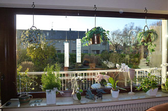 ... diese schön dekorierte Fensterbank mit Sonne und grünem Daumen.