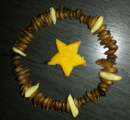 Sie hat Weihnachtsschmuck aus Apfelkernen