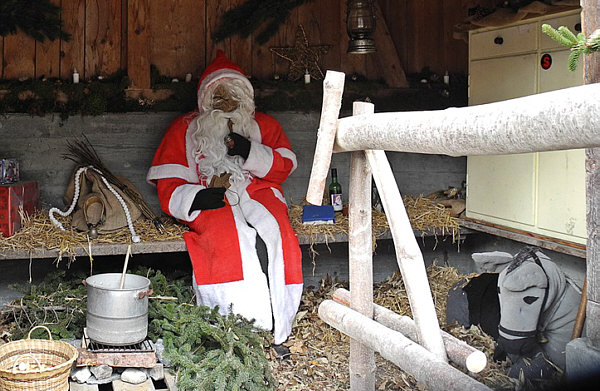 Der Samichlaus (Nikolaus) wartet in der Remise (Wirtschaftsgebäude für Fahrzeuge