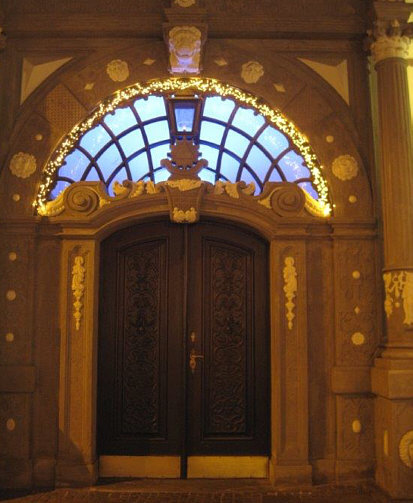 Tourismus-Info oder sonst wo sein. Man schmückt ein Fenster oder ein Haus.