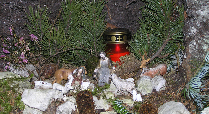 Die Krippe ist das ganze Jahr über schön geschmückt und gepflegt.