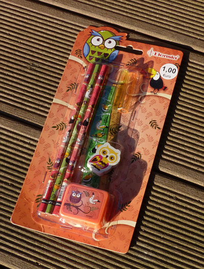 Bleistifte, Radierer, Lineal und ein Eulenkästchen ... sieht wertvoller aus
