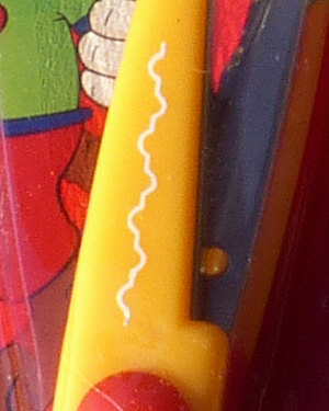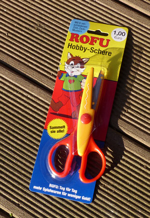Eine Hobbyschere, die nicht gerade schneidet, sondern dekorative Kurven