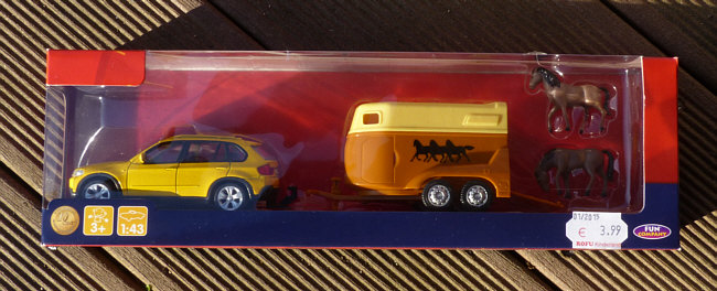 Ein BMW mit Pferdeanhänger und zwei Pferde ... da kann man nicht meckern.