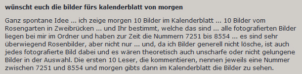 dürfen sich ein Bild aussuchen ... auch Ihr Kalenderblattleser dürft das.