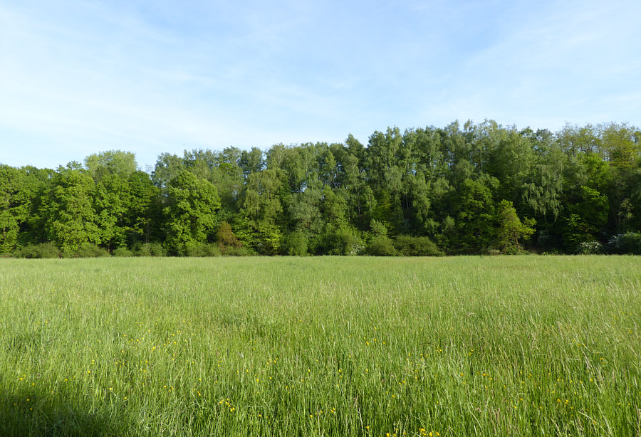 Dann gehts ein paar Meter am Waldrand vorbei mit Aussicht auf diese Wiese ...