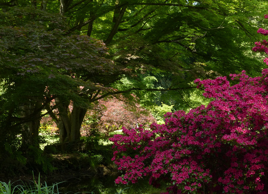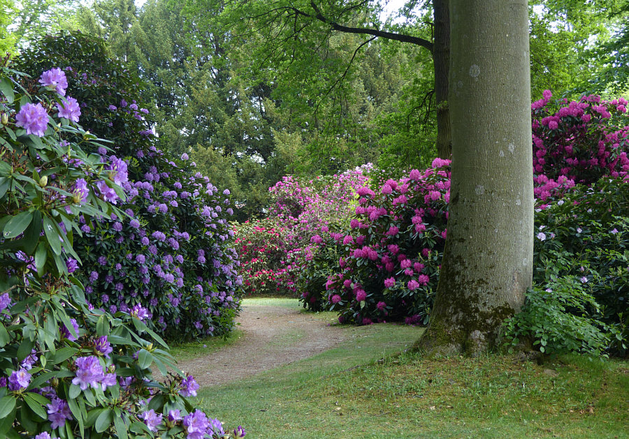 ... und dann lassen wir das Wasser hinter uns und gehen zum Rhododendren-Wald
