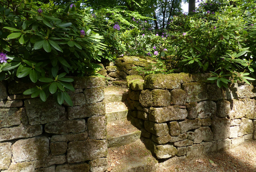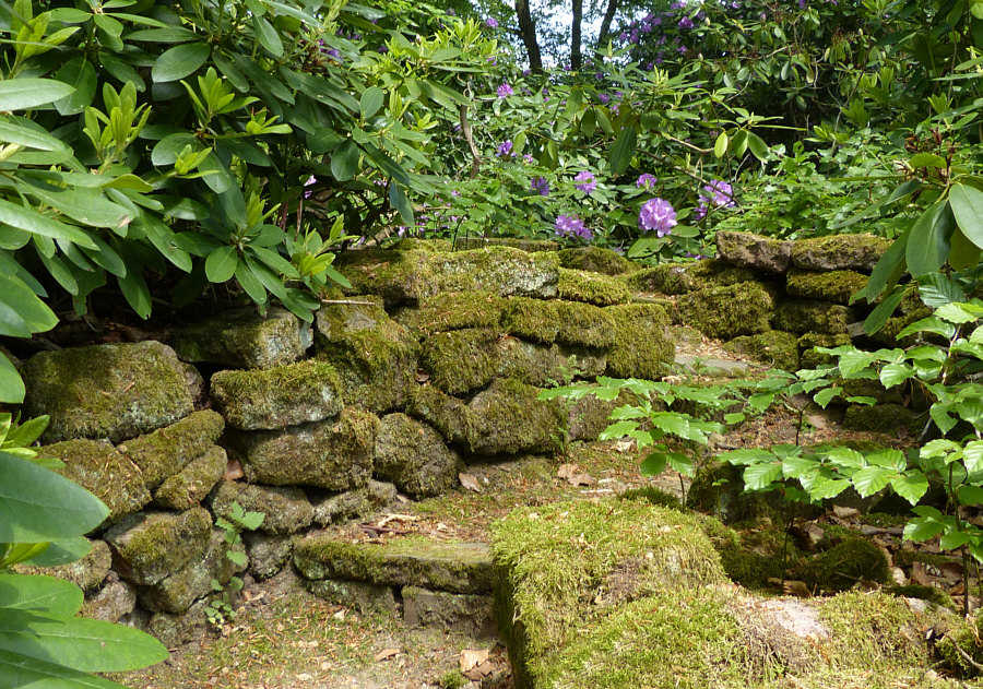 ... ein kleiner Solitär-Rhodo ... oder diese Mauer ...