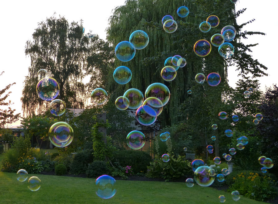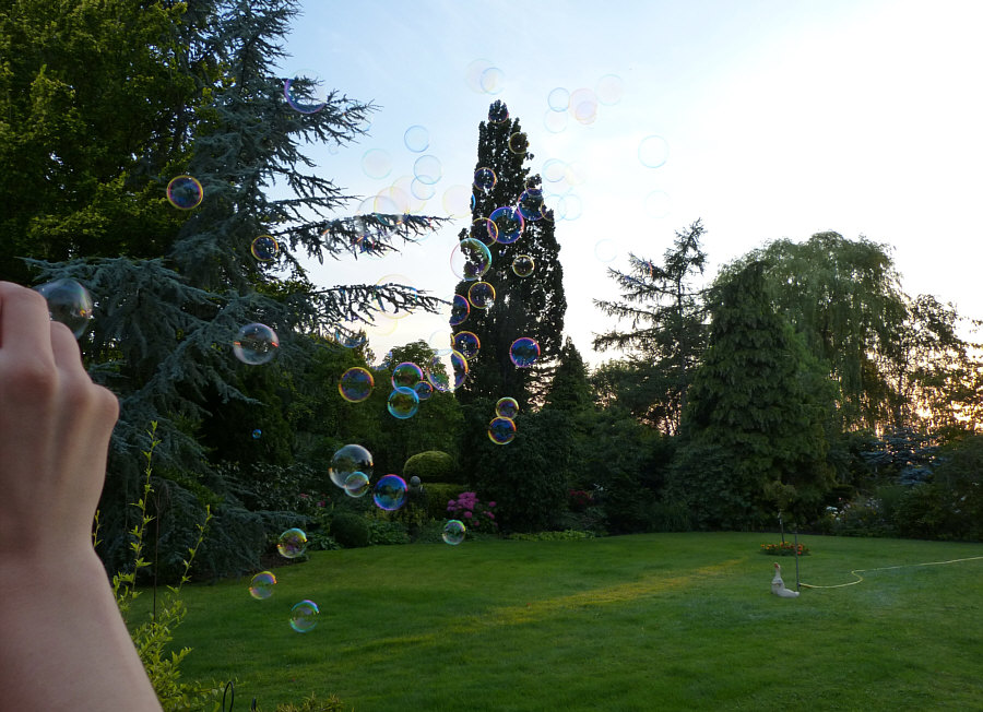 Seifenblasen fliegen zu lassen und ihnen nachzuschauen.