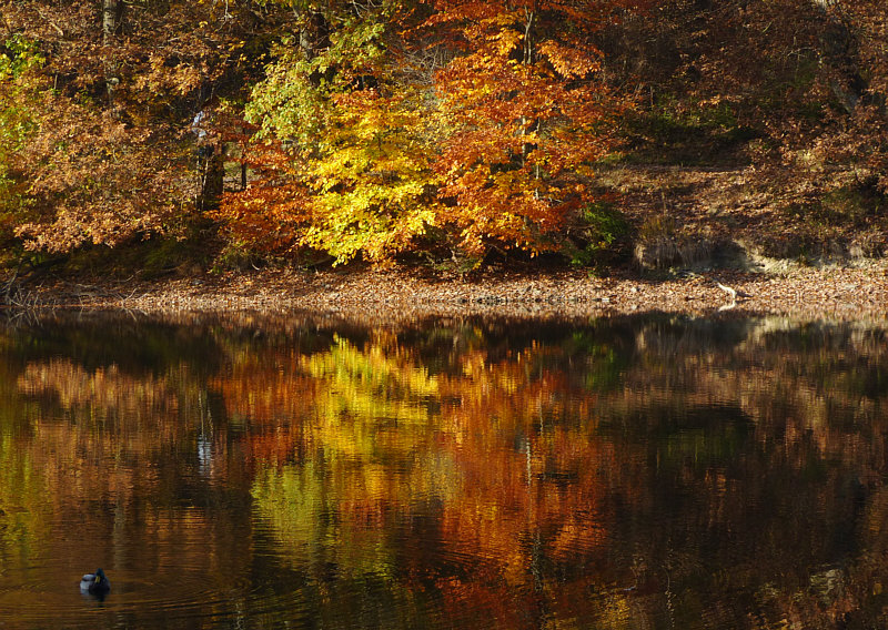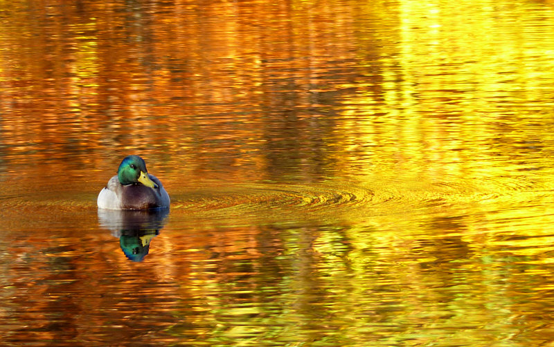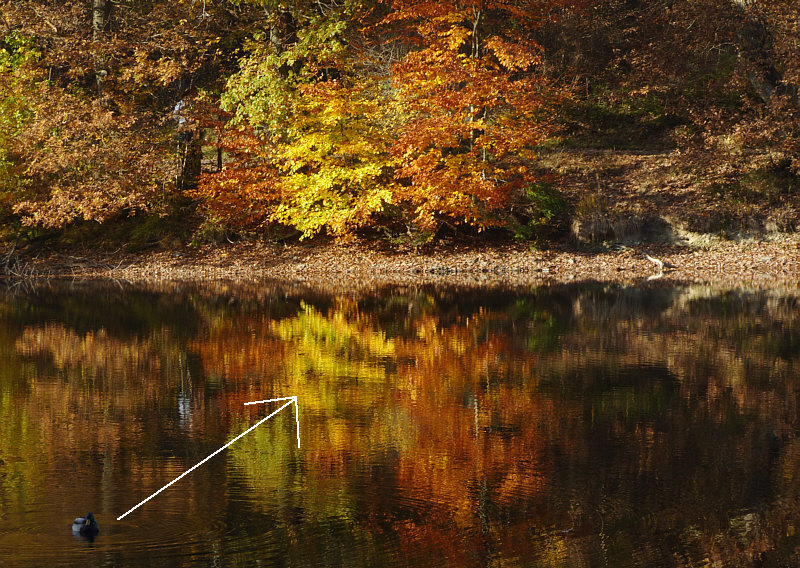 ... und zwar dorthin, wo die Herbstfarben im Wasser sind ... zusätzlich zur Ente
