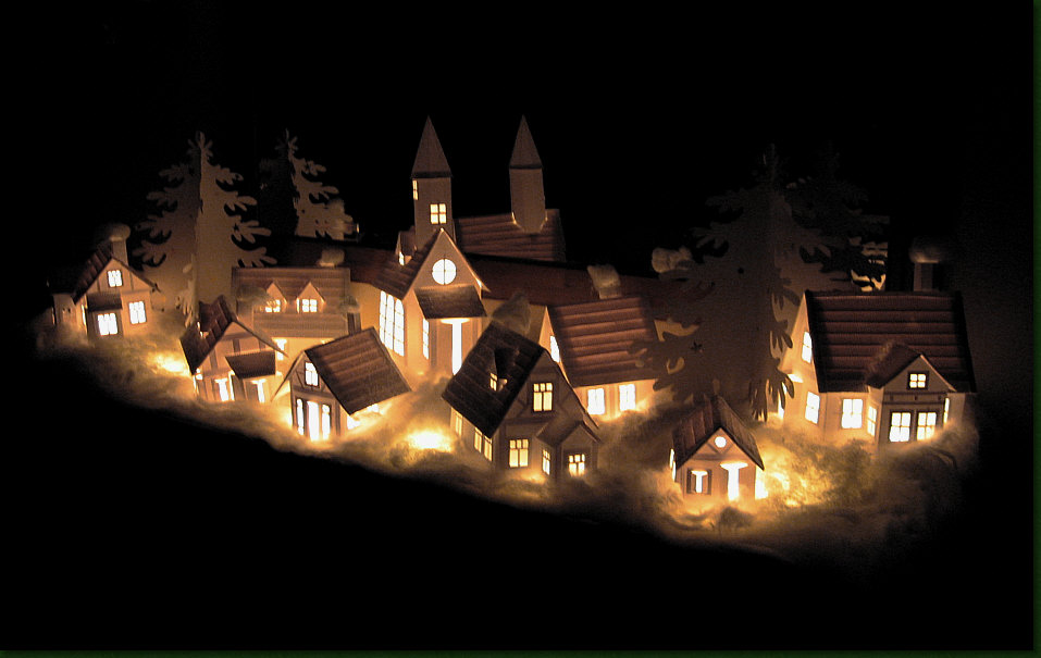 Marthe, Elfis nun geklebte Papierschnipsel und dem Lichterdorf von Janine.
