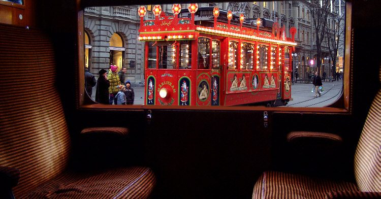 als Märlitram auf einem Rundkurs durch die Innenstadt von Zürich.
