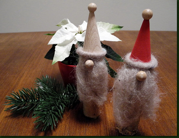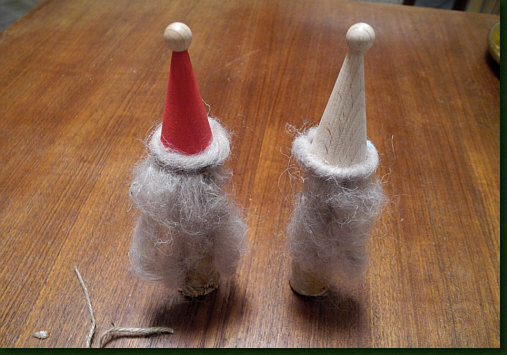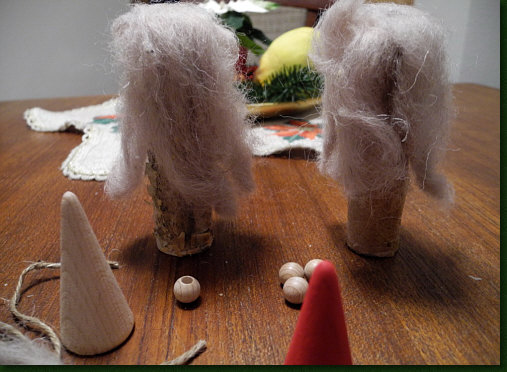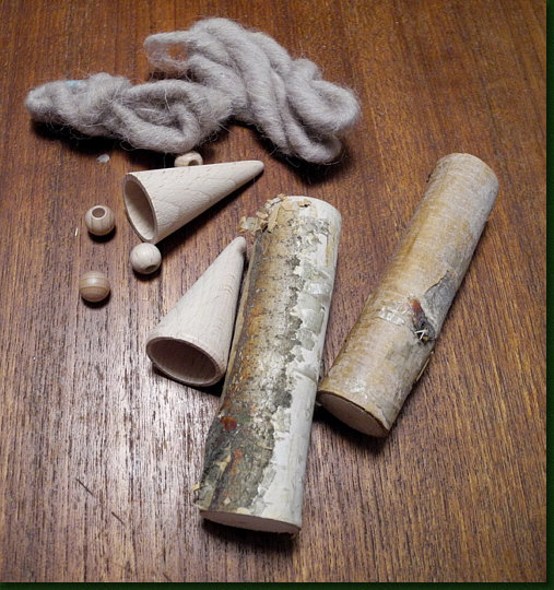 Aha ... zwei Stücke Holz ... zwei Kegel, vier Perlen mit Loch und zwei