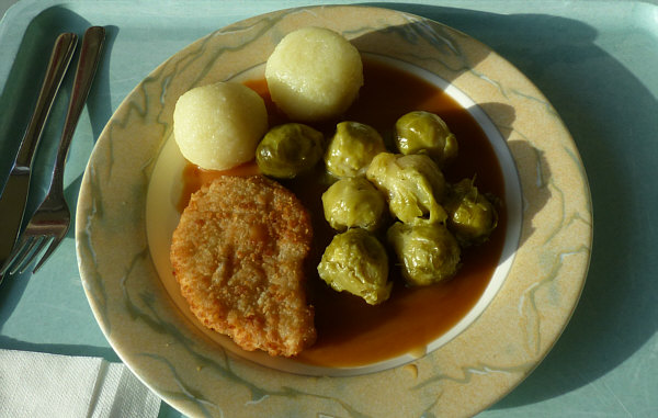 ... ein vegetarisches Schnitzel, Rosenkohl und Knödel ...