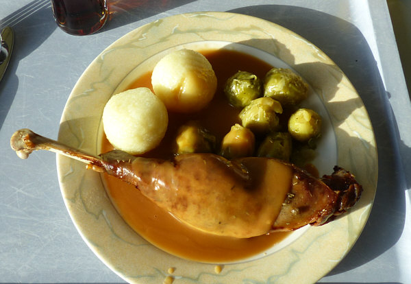 Beate war sehr zufrieden ... Rosenkohl und Knödel waren richtig fein.