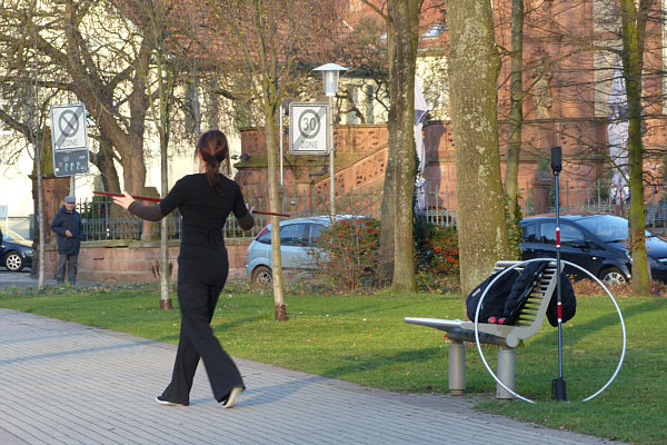 Eine junge Dame übte eine Choreographie mit einem Stock ein ...
