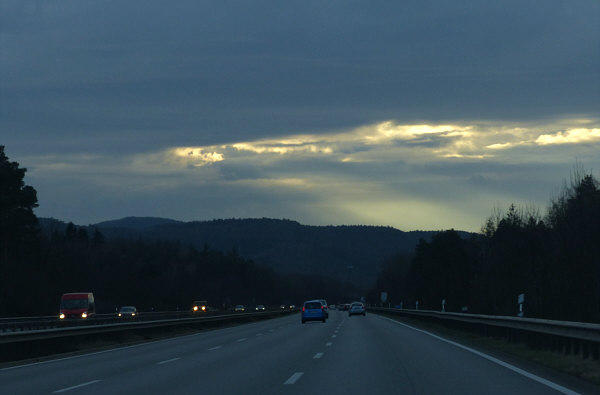 Lichtfinger begleiten uns auf der Heimfahrt ...