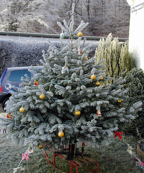 Bei ihr gabs damals keinen Schnee, aber das Weihnachtsbäumchen war vereist: