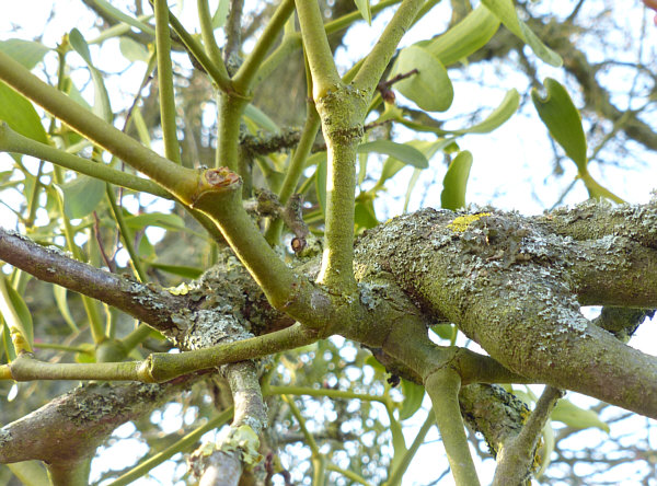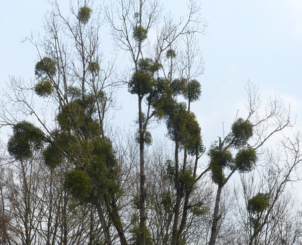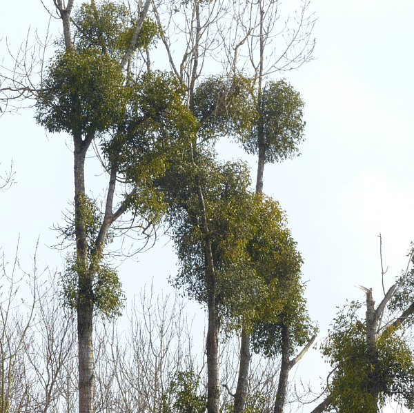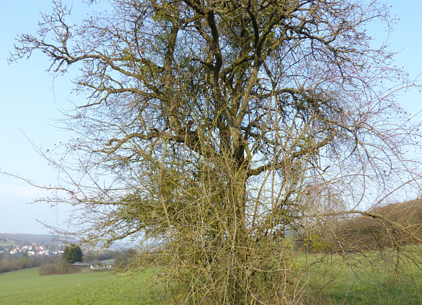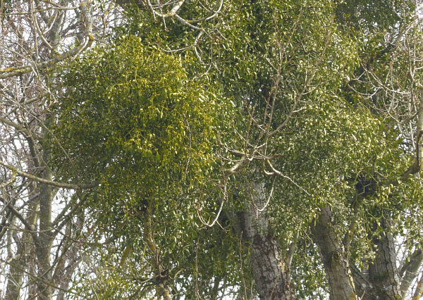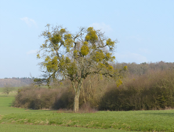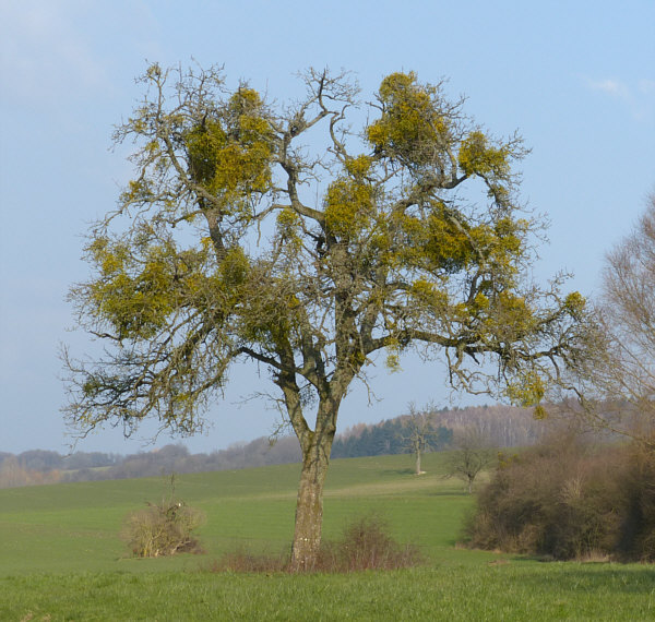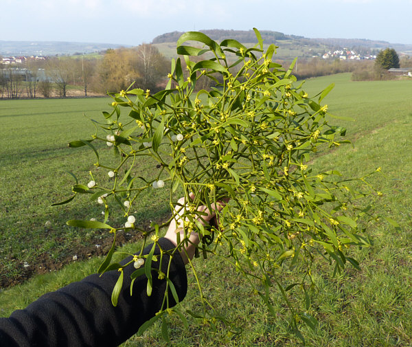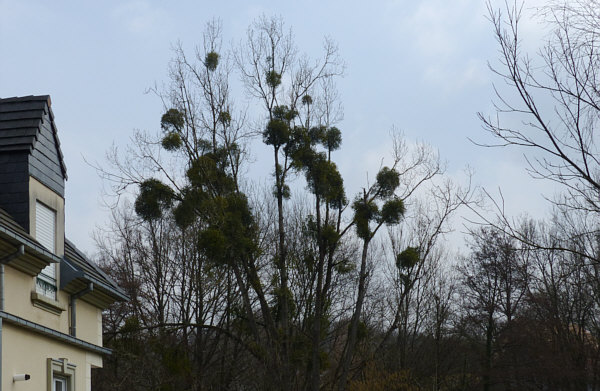 Der Tag der Kalenderblätter - Blatt 2 Hängt sie höher ... ![]() ... muss irgendwann mal jemand bestimmt haben ... denn solche Misteln sind leider immer unerreichbar weit oben. ![]() Da bleibt nur, sie mit der Kamera näher ... ![]() ... und noch näher zu holen ... ![]() ... und zum Schluß so nah wie es geht ... ![]() ... aber das nützt auch nicht wirklich etwas. 90 Minuten später ... wieder ein Baum ... ![]() ... der sogar über eine Wiese zu Fuß erreichbar wäre. ![]() Aber auch dieser Baum ... ![]() ... ist für Schinkel-Hände unerreichbar ... damit wollte ich doch gerne mal einen Mistelzweig von nahem sehen und da er Glück bringen soll, wäre auch Beate über einen solchen sehr erfreut gewesen. Ach wir gehen mal hin, auch wenn wir nicht groß genug sind. Und dann geschah auf dem Fußweg zu diesem Baum das Wunder ... vor dem Baum steht ... ![]() ... nicht der ganz vorne, sondern der verdeckte dahinter. Auf dem Weg zum anderen Baum kommt man an diesem Baum vorbei ... ![]() ... ein wildes Gestrüpp-Etwas mit reingewachsenen Wildrosen. Und mit Misteln ... was man von weiter weg gar nicht genau gesehen hat. Hier wuchsen aber die Misteln ... und das in Greifhöhe ... ![]() ... und so konnte ich endlich mal diese besonderen Vertreter der Natur von Nahem fotografieren. Solange sie noch jung sind, kann man sie deutlich an der Blattfarbe erkennen ... ![]() ... und im Winter natürlich auch daran ... ![]() ... das an diesem Baum etwas Blätter trägt und das kann ja nicht der Baum selbst sein. Ältere Mistelzweige sehen, wenn man die Blätter außer Acht lässt ... ![]() ... wie ganz normale Äste des Baumes aus. Große Freude, dass wir nun endlich mal einen Mistelstrauß ... ![]() ... mit nach Hause nehmen konnten ... und das sogar mit weißen Beeren :)). |