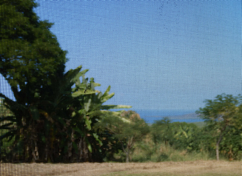 Die Fenster hier tragen Fliegennetze ... damit wir auch gut schlafen