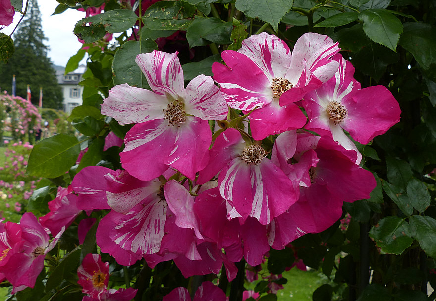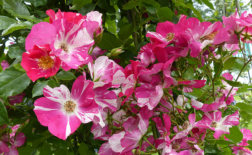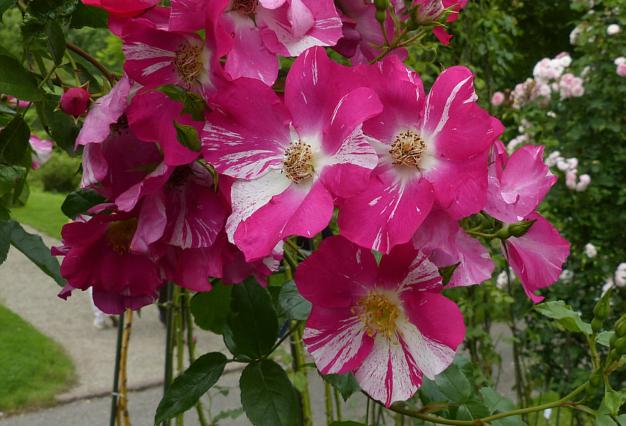 Zum ersten Mal sah ich dort eine Malerrose als ungefüllte Kletterrose: